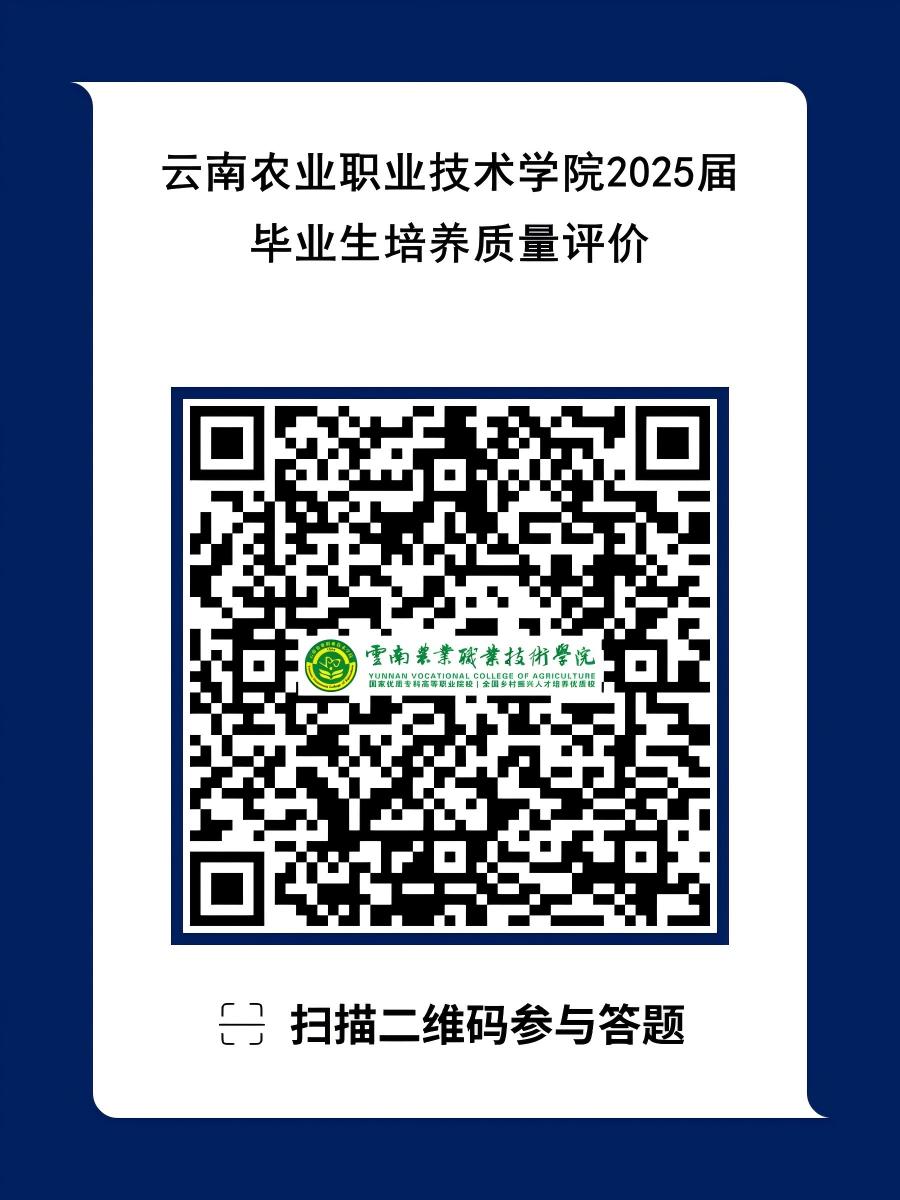 我们诚挚地邀请您分享您的就业、创业现状及发展等方面情况,拨冗参加云南农业职业技术学院2025届毕业生培养质量评价,为学校人才培养与服务的改进贡献一份重要的力量!